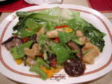 スクムビット通りのSoi 5にあるスーパーの一角に24時間営業のフードセンターがあった。値段は屋台の倍ほどではあったが、外国人街だけあってタイ人の客は2割程度。厨房では強健そうなお母さんたちが機敏な動きでどんどん料理を仕上げていた。料理は定番のバジル炒め。うまい。 |