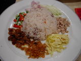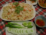 カオ クルッ カピ (炒飯、各種おかず添え) |