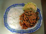 ラープ25バーツ・ご飯5バーツ 合わせて30バーツ(≒93円) |