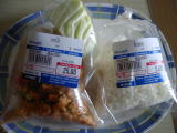 スクムビット通りSoi77にいよいよフランス系のデパートcarrefourがオープン。昼に食べたLotusのフードセンターとおなじでクーポンを購入して食事を購入する方式。左はご飯の上におかずをのせてくれる「カオケーン」。3種類のせてくれて25バーツ(≒78円)。安かったので、もう一品。右はセンミー(極細麺)にあんがのっている。全く辛くない料理。20バーツ(≒62円) |