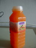 右写真は今日も買ってしまった果汁100%ジュース。主成分はケーロート92%・、ターン(砂糖やし)8%。「ケーロート」というのはタイ語で人参の事。英語名からの派生語。英語で人参は「キャロット」それをタイ語読みすると「ケーロート」。 味はまるで甘ったるい人参ジュース。 |