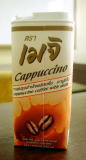 個人的な事だが(このページ自体が既に超個人的であるが…)、日本にいた時より私は朝一杯のコーヒーを飲むのが好きである。日本で飲んでいたのは、サントリー「BOSS」。色々な缶コーヒーを飲んだが、私一番のお気に入りはこれであった。職場にサントリーの自販機が置いてあったので、毎朝これを買って飲むのが日課であった。 ところがタイには残念なことにBOSSが無い。これまた色々な種類のコーヒーがタイにも存在はしているが、今までどうもシックリといくコーヒーにめぐり合えていなかった。ところが、先日やっと発見。タイ産、明治のカプチーノ。本当のカプチーノであるかどうかはさておいて、タイにもこんなコーヒーがあったんだとちょっと嬉しかった。BOSSには程遠いけれど、とりあえずはこれを毎朝コンビニで買う日々がもうしばらくは続きそうな感じである。 (写真のBOSSは日本から来られたある方から頂いたもの。一杯のカケソバ≠ネらぬ、一本のBOSS¥態で時間をかけてゆっくり飲みました。ん〜感激!!) |