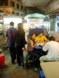 タイは農業(米作)大国であると同時に、観光立国でもある。そのなんと言っても観光の目玉として挙げられる中の一つに、その料理と屋台。どこの小さな村にも、必ずと言っていいほど、一日中何かしらの屋台が街のいたる所に出ていて、「タイ人」と「観光客」と「私達」の胃を膨らませてくれる。 ツアーパック旅行などでタイに来ても、このような路上屋台で食事をすることなどはまず無いようで、このタイ独特の屋台の雰囲気を味わうことは難しいのかもしれない。また、観光地のど真ん中でもない限り看板はタイ語のみであるし、店員は日本同様あまり英語は通じない。それでも屋台は殆ど専門料理別に店舗が分かれているので、指を指すだけでも、この屋台料理はありつけることが出来る。 タイに旅行に来る方々、ガイドブックに乗っているレストランだけではなく、是非是非、近くにある屋台街へも…。 タイ料理は一体どんな料理があるか知りたい場合は、本屋で最近はタイ料理を写真とタイ語名で書いてある本などが数多くあるので、それを参考にしてもらえればと良い思う。(勿論、このサイトでもOK) 私自身も日本からタイ料理のそのような本を何冊か持って来ていたので、それらが非常に役立った。必ずしも全ての店で全ての料理が同じような状態で出てくることはないので、それらの本や資料と、自分が食べている料理を比較すると意外と面白い。同じ店で、同じ料理でも、日によって作っている人が違うと味が違うので、これまた面白い。 |