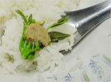 9、食べるときには、少量のナンプリックパオをご飯に乗せて食べる。写真のようにサダオと共に食べても良い。右写真の量のナンプリックだけでかなりの量のご飯が食べられる。アロイ テ ペッ#味しいけれど辛い。そしてコム°黷「。 |