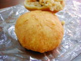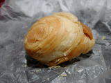 朝食で、サラパオを買った。家から一番近いBTS(スカイトレイン・モノレール)の駅の高架下では毎朝様々な種類の朝食が売られている。 値段も量も手ごろで嬉しい限り。このサラパオは袋に4つまとめて入って10バーツで売られていた。1個2.5バーツは安い。うち2個は中に春雨と野菜の炒め物が入っている物、もう2つは芋で作ったいわゆるアンコ入り。 |