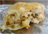 タイにもパイ生地のお菓子があった。 カリーパップという名前のこのお菓子は、バンコクから北に車で1〜2時間位のところにあるサラブリー県の銘菓。パイ生地の中にカレーの風味が若干付けられている面白い味のお菓子であった。 生地の中には様々な種類のアンが入っている。この箱の中に入っていたのは7種類。箱に書いてあるままを直訳すると、「ピンク色=鶏、水色=豚、白色=豆、緑色=山芋、黄色=パイナップル、オレンジ色=椎茸、赤色=ブドウ」。 …と何ともいまいちつかみ所の無い組み合わせではある。(12月6日) |