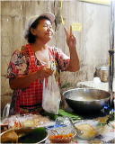 外国人だらけで、タイ人があまりいないタイ料理店もあれば、逆に客はタイ人だけというタイ料理店が当然有る。BTSの終点駅オンヌットの近辺は完全にタイ人の居住地区であって、後者の様な店はこの近辺に多い。その独特(いや、本物)のタイの雰囲気もそうだが、メニュー表がタイ文字の物しか存在していないというのも外国人が入りにくい理由の一つであろうと思う。![]() ここの店はBTSオンヌット駅徒歩1分の所にあるスクムビット通りり面した排気ガスの素晴らしい、オープンテラス(?)のレストラン。soi50の所(パクソイ)である。店内の照明は白色と何故か青色の蛍光灯。かなり怪しい。 客はタイ人しかいない。外国人は私だけ。席に着くとまず飲み物を聞かれる。勿論「ナンプラオ(飲料水)」。それと同時に店員から渡されるものはペンとメモ用紙。客がこれに自らオーダーを書き込んで店員に渡し、オーダーをするシステムである。メニュー表に載っている料理はタイ文字のスペルを確認できるが、メニューに全ての料理は載っていない。私は今回「カオニィアオ(もち米)」も注文したくてメニュー表を見回したのだが載っておらず、自分のかすかな記憶を頼りにタイ文字で半ば強引に書いて渡した。今回はなんとか当っていたらしくオーダーはすんなりと通ってくれた。ひらがな・カタカナのようにタイ語は必ずしも一音一文字で無いから頭が痛い… 雰囲気は怪しいが、味はタイの本物の味である。汗をダラダラかきながら左記の辛い2品を完食した。辛くない料理も注文すれば良かった… |