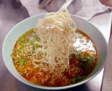 バミーの屋台が私の住んでいるアパートの入り口に毎晩出てくる。 価格は一杯20バーツ。 スクムビットの観光客が集まるような所で売っているバミーは一杯30〜40バーツするので、ここは庶民的な一般価格であろうと思う。田舎に行くと一杯15バーツというのも有るようである。 味は相変わらずの化学調味料の味はきつい。バミーヘン(汁無し)を注文するときは 「化学調味料を入れないでください」と注文する事も出来る。ちなみにタイ語では教科書通りに言うと「マイ・サイ・ポンチュー・ロット」。しかし日本人がタイ人に言うときは「マイ・サイ・アジノモト(味の素)」でも十分通じる。しかも「味の素!!」のほうがタイ人にはウケが良い 。 |