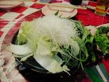 テーブルに運ばれてくるのは、液体が入って炭火でガンガンに熱くなっている鍋と、野菜と肉 (今回は豚肉とその内臓)。 しゃぶしゃぶである。ただ、タイスキではない。こちらはタイ(というか、ラオス)の昔からあった鍋料理である。 正に煮込み!! という感じで、ルールはなし。とにかく材料を鍋に放り込んで、火が通ったらアツアツを食べるそれだけである。 野菜には、白菜やパッブン(空芯菜)、ビーフン、ホーラパー(バジルの一種)が使われていて、これがまた美味しい。 ホーラパーは独特の香りがあるが、この香りが肉の嫌な臭みを消し去ってくれて、また健康にもよさそうでGOODな料理である。 (9月17日) |