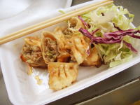 「プー・ジャー」の「プー」は蟹の意味。「ジャー」は、恋人や、幼少の子供などを呼ぶ際に、親しみを込めて名前の後につけるタイ語で、日本語でいうところの「太郎ちゃん」の“ちゃん”に当たる言葉である。 つまるところ、「プー・ジャー」は“蟹ちゃん”という意味のユニークな名前のタイ料理なのである。 …と、いう話は以前あるタイ人から聞いた話。 ところが辞書を引くとこの「ジャー」は同音のベトナム語“saa”から来ている言葉で、『炸』‘油で揚げる’という意味である、と載っていた。 なるほど、ベトナム語からタイ料理名になったものもあったとは。と、いうことはベトナムにも同じような料理が有るのであろうか…。 この「プージャー」は主に蟹肉と豚ひき肉を野菜や香草などと混ぜ、ハンバーグ状にしたものにパン粉をつけて揚げたメンチ料理。付いて来たソースはただのトマトケチャップ。確かに、これタイ料理!!? という感じである。 「トート・マン・カーオ・ポート」はトート・マン(さつま揚げ)なのではあるが、一般的に名の知られているトート・マン・プラー(魚)やトート・マン・クン(海老)とは違う、カーオ・ポート(トウモロコシ)が主材料。 まぁ、ただのトウモロコシを生地でまとめて揚げただけの料理。 でもビールのアテには、まぁ、いい感じ。(7月22日) |