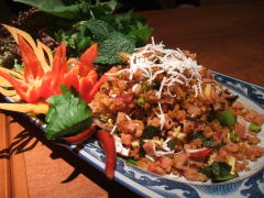 中央線、高円寺。 4月9日、ソムオー高円寺店が新規にオープンしていました。 新宿歌舞伎町にある「サームロット」の系列店。 新大久保にあるソムオーの第二号店。 店内は、オーナーがタイ現地で買ってきたタイ様式の木材で飾られ、チェンマイ家屋風の個室(10人部屋)が、何ともいえない雰囲気。 料理も自家製ネームのサラダ、北タイの代表的な料理「カオソーイ」、そして具沢山のトムヤムクン。 おいしくいただきました (*^_^*) |