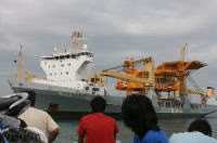 ここ付近は世界各国からの輸送船が集まってくる一帯で、島に行く間にも、何隻もの大型タンカーの横をすり抜けていった。