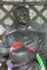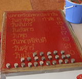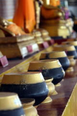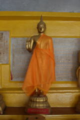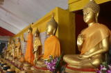 これは「各曜日」の仏像が並んでいる所で、それぞれの仏像の前に置いてあるさい銭箱に1バーツずつ入れ、最後に余った小銭をすべて自分の生まれた曜日の仏像に入れるというのがここの拝み方であるそうだ。