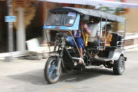 スカイラップはいわゆる「トゥクトゥク」と異なり、エンジンはなんと車の物を使っている強力三輪。