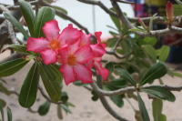 島内のビーチには、今はやりの「ピンクシャツ」が。