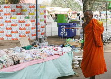仏像の横には各曜日とその金額が書かれた看板があり、それに従って紙幣を1バーツに両替する。
