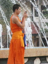 →こちらはそのキンキラキン☆を拝んでいる人。 タイ人は仏像を拝む時、床に座る。 |