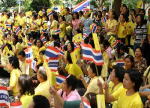 “黄色”は国王陛下の生まれた「月曜日」の色で、昨年の国王陛下在位60周年慶祝記念の時からタイ国民ほぼ全員がこの黄色の服を持ち、特別な時だけてはなく普段着として着用している人が多い。