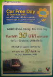 9月20日(土) | バンコクの交通渋滞対策として、21日と22日の2日間、BTS(スカイトレイン)が全区間10バーツで乗車できるというキャンペーンをするそうである。また、自転車で駅まで来た人には、チケットをプレゼント、という話もある(本当だろうか?) そもそも、駅の辺りには自転車を止めるスペースなんてないような気もするのであるが… 要チェック!! |