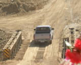 | 道程の途中、立ち寄った休憩所にて。 | 山道を走っていた、 工事関係者を乗せた車 このピックアップに 15人以上乗っている |