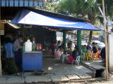 | まさに国境に接している市場 タイ人はここで大量に雑貨や生活用品を買って行く (タイ人の国境往来は必要書類があれば、 指定範囲内で比較的行動自由) |