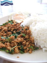 今回は牛肉のレシピだが、鶏肉、豚肉のスライス・ミンチ肉何でもOK。 ちなみに、←写真は豚肉のガパオ。 |