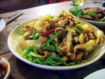 (เนื้อผัดกับใบกะเพราใส่พริกขี้หนู)