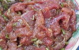 1. หั่นหมูหรือไก่ให้เป็นชิ้น